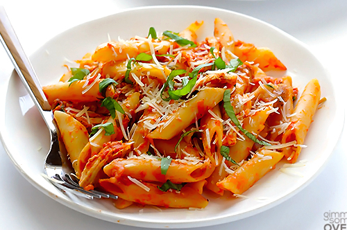 Carbs get a bad rap, but whole grain carbs, pasta included, can and should be part of a healthy diet. Whole grains are full of dietary fiber, a carbohydrate that your body is unable to digest. This isn’t a bad thing! Fiber is known to reduce LDL (bad) cholesterol and regulate sugar intake. Foods high in fiber have fewer calories per gram than their fiberless counterparts, keeping you fuller for longer. Not all recipes below call for whole grains, but whole grain pasta is a Noom green food so try to make the healthy swap if you can. Happy eating!