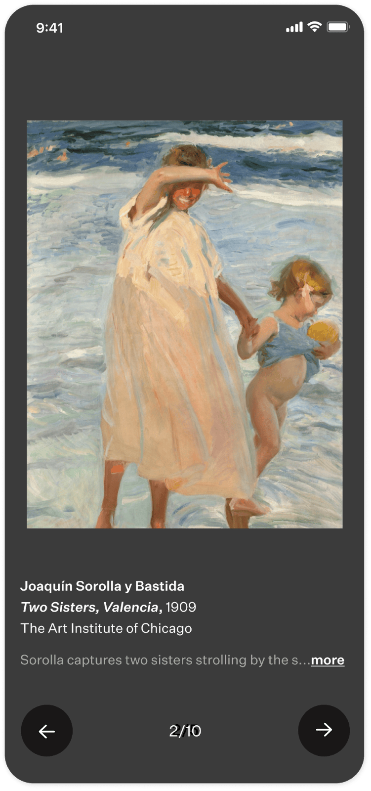 Building on that empirical approach, we turned to a practical question: how should people engage with art to feel its benefits most deeply? In art therapy, as in wellbeing, process matters as much as content. That led us to explore two approaches—slow-looking and free exploration—and to design our feature around what works best for everyday use.