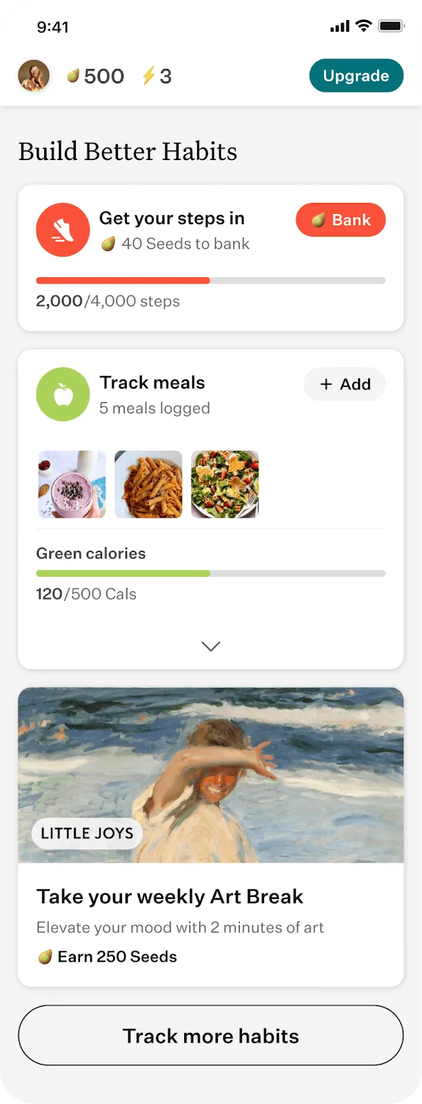 By rotating weekly themes tied to different mindset pillars, the feature creates a balanced ecosystem of wellbeing. Seasonal moods and emotions are captured and linked to specific pillars, helping viewers understand, express, and regulate their feelings more deeply over time. Backed by science and gamified for motivation, just two minutes of engagement earns Noom’s virtual currency, Seeds—making reflection both fun and rewarding. This positive feedback loop turns brief moments of engagement into lasting mindset shifts, laying the foundation for long-term flourishing. A mood tracker will follow soon after launch.