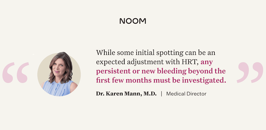 “While some initial spotting can be an expected adjustment with HRT, any persistent or new bleeding beyond the first few months must be investigated,” says Dr. Mann.