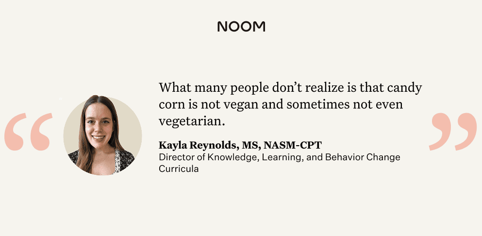 From a nutrition standpoint, candy corn is exactly what it looks like—a sugary treat. It’s perfectly fine to enjoy it in moderation, especially since most people only eat it seasonally. Noom supports this balanced approach—understanding what’s in your food, practicing mindfulness, and making intentional choices that align with your goals.