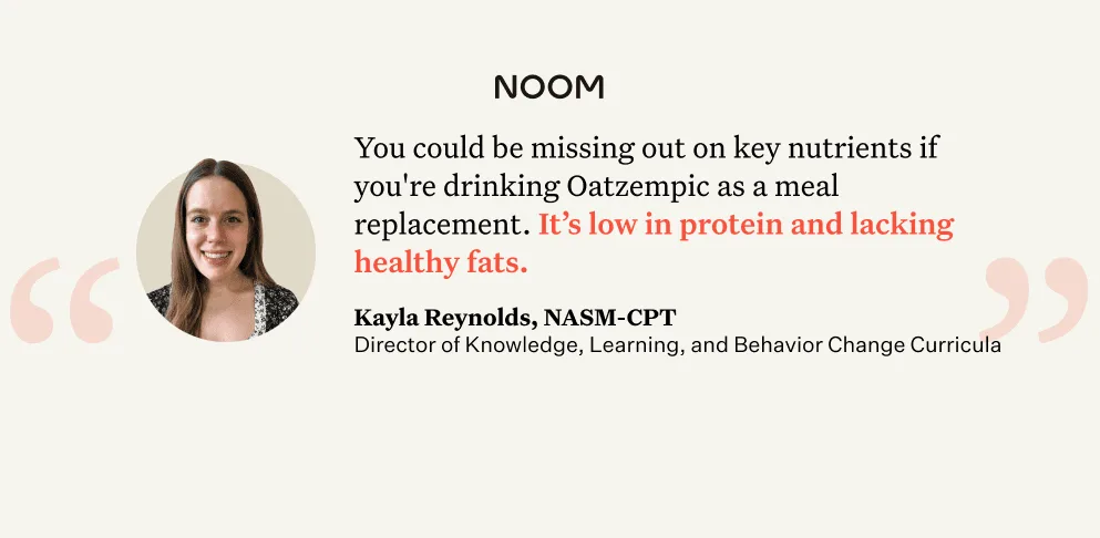 “For most people, sipping on an oat-based smoothie like Oatzempic is safe, but it might not be all that satisfying, and you could be missing out on key nutrients if you’re eating it as a meal replacement,” says Reynolds. “It’s low in protein and lacking healthy fats. While Oatzempic won’t boost weight loss, including oats at breakfast is a great way to add a boost of fiber and nutrients to your day,” she adds.