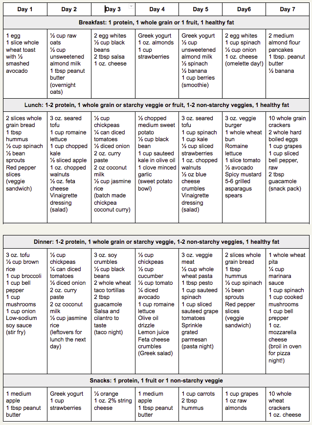 See the example weekly meal plan below, which includes delicious vegetarian and vegan recipes!