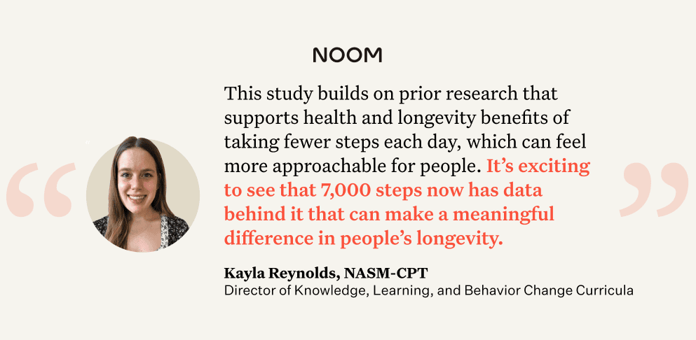 “While it’s a worthy goal to work towards, this study builds on prior research that supports health and longevity benefits of taking fewer steps each day, which can feel more approachable for people. It’s exciting to see that 7,000 steps now has data behind it that can make a meaningful difference in people’s longevity,” she adds.