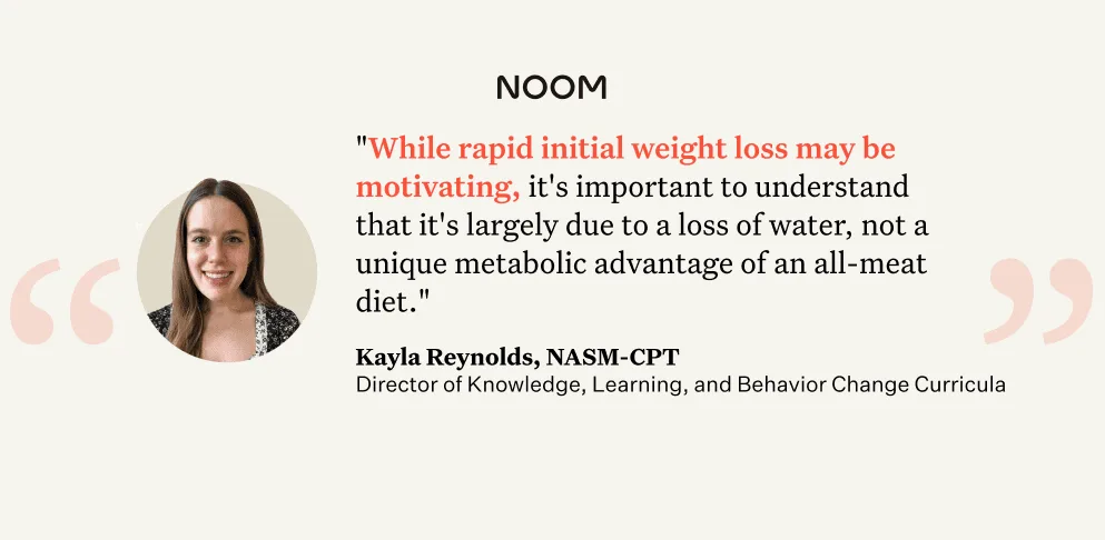“While rapid initial weight loss may be motivating, it’s important to understand that it’s largely due to a loss of water, not a unique metabolic advantage of an all-meat diet,” says Reynolds.