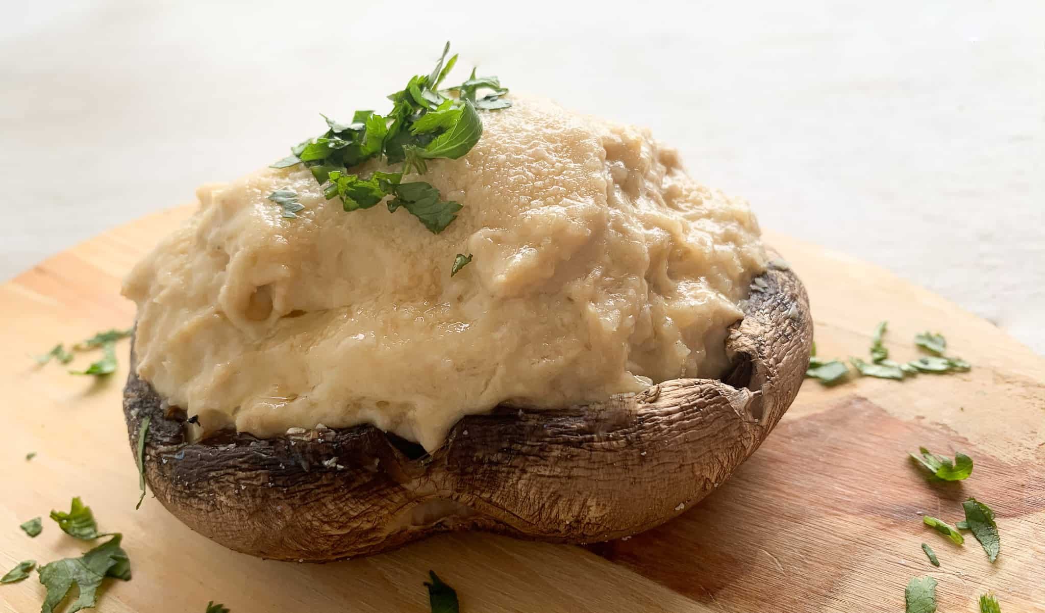 Portobello relleno de crema de pollo