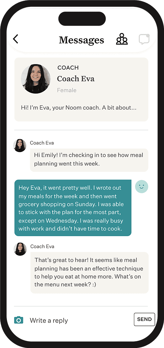 Noom’s GLP-1Rx Program helps you meet your employees’ GLP-1 needs without shouldering the cost. Exclusive to enterprise clients who purchase Noom Weight for their population, members benefit from discounted access to a cash pay subscription of the Noom GLP-1Rx Program, available only to those who clinically qualify.