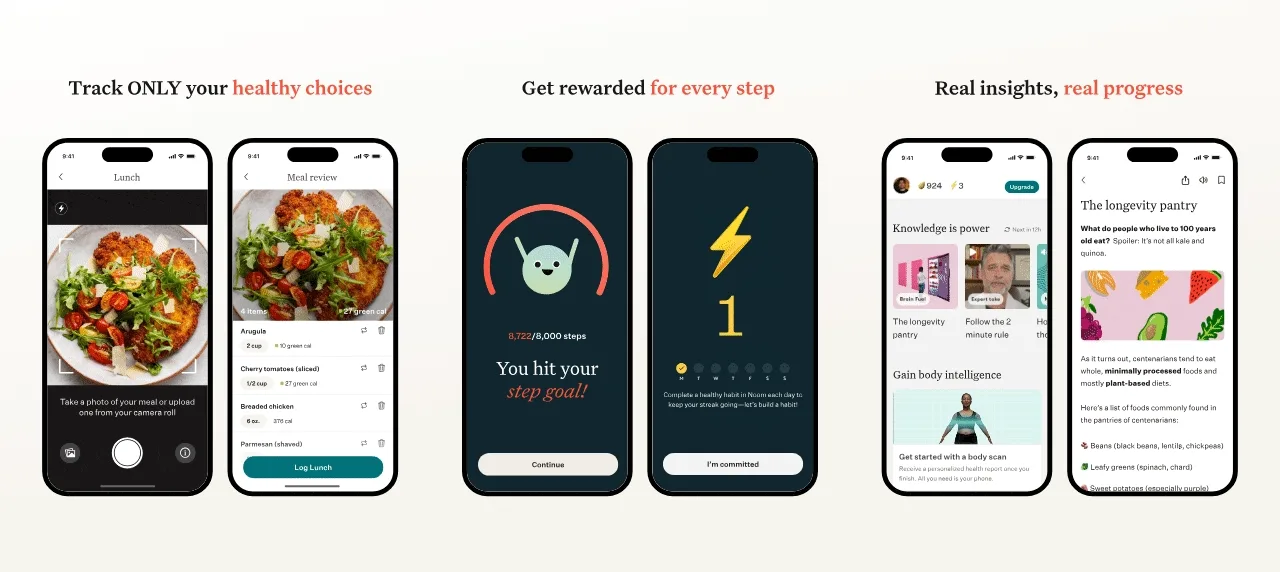 • AI-powered health insights: With just a smartphone camera and the Noom app, anyone can capture body composition data – faster and easier than a DEXA scan – turning lean and fat mass measurements into motivation for healthier habits. They can even take a simple photo of their food to log it and be rewarded for their healthy choices.